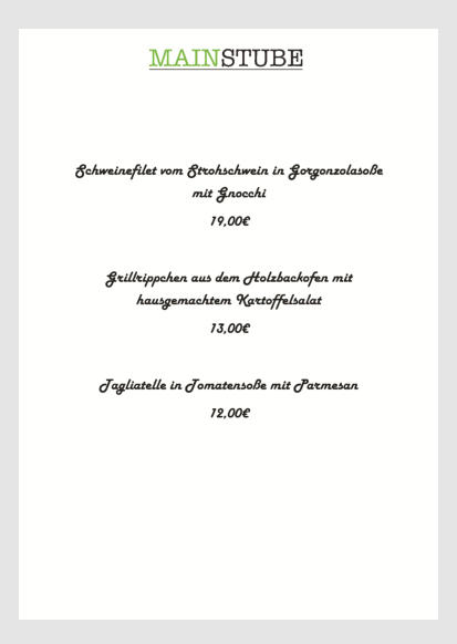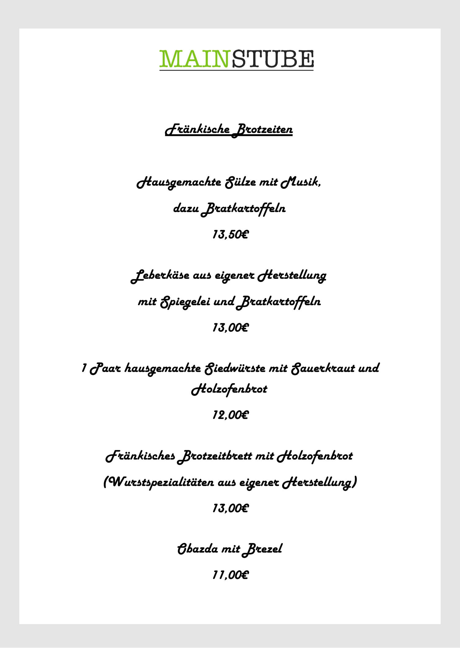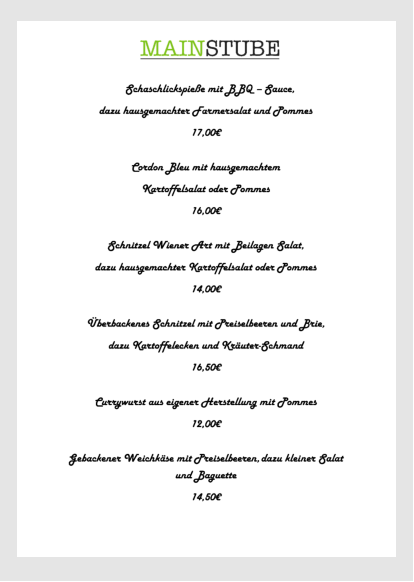 Unsere Speisekarte für Sonntags