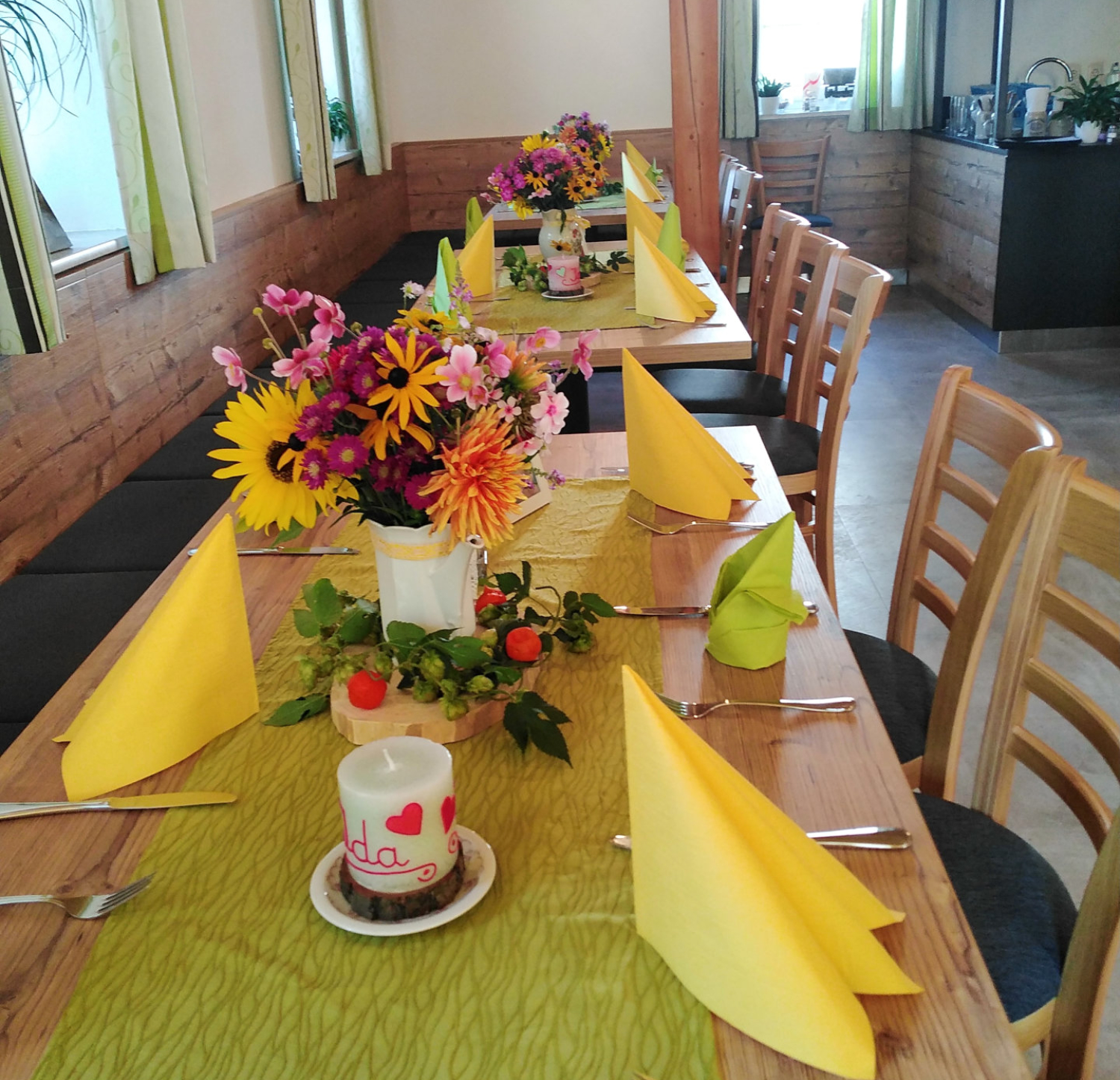 Unser WirtshausUnseregemütlicheStubebietetPlatzfürbiszu40Personen.ImAußenbereichfinden nochmals bis zu 32 Personen Platz. DieQualitätunsererSpeisenliegtunssehramHerzenundsoverzichtenwirbeider ZubereitungkonsequentaufkünstlicheZusatzstoffewieKonservierungsmittel,Glutamat, künstlicheAromenoderBindemittel.WirverarbeitennurFleischundWurstauseigener HerstellungoderausderRegion.ErlebenSieeinekulinarischeReisedurchdiefränkische Küche, bei der frische Produkte und Tradition im Mittelpunkt stehen.