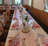 Unser WirtshausUnseregemütlicheStubebietetPlatzfürbiszu40Personen.ImAußenbereichfinden nochmals bis zu 32 Personen Platz. DieQualitätunsererSpeisenliegtunssehramHerzenundsoverzichtenwirbeider ZubereitungkonsequentaufkünstlicheZusatzstoffewieKonservierungsmittel,Glutamat, künstlicheAromenoderBindemittel.WirverarbeitennurFleischundWurstauseigener HerstellungoderausderRegion.ErlebenSieeinekulinarischeReisedurchdiefränkische Küche, bei der frische Produkte und Tradition im Mittelpunkt stehen.